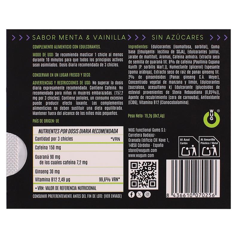 Dosis diaria recomendada de hasta 3 chicles. En caso de que el peso del individuo sea superior a 80 kg, se recomienda tomar 2 uds. Los efectos pueden variar dependiendo de cada individuo, según su peso, edad, o estado de salud.